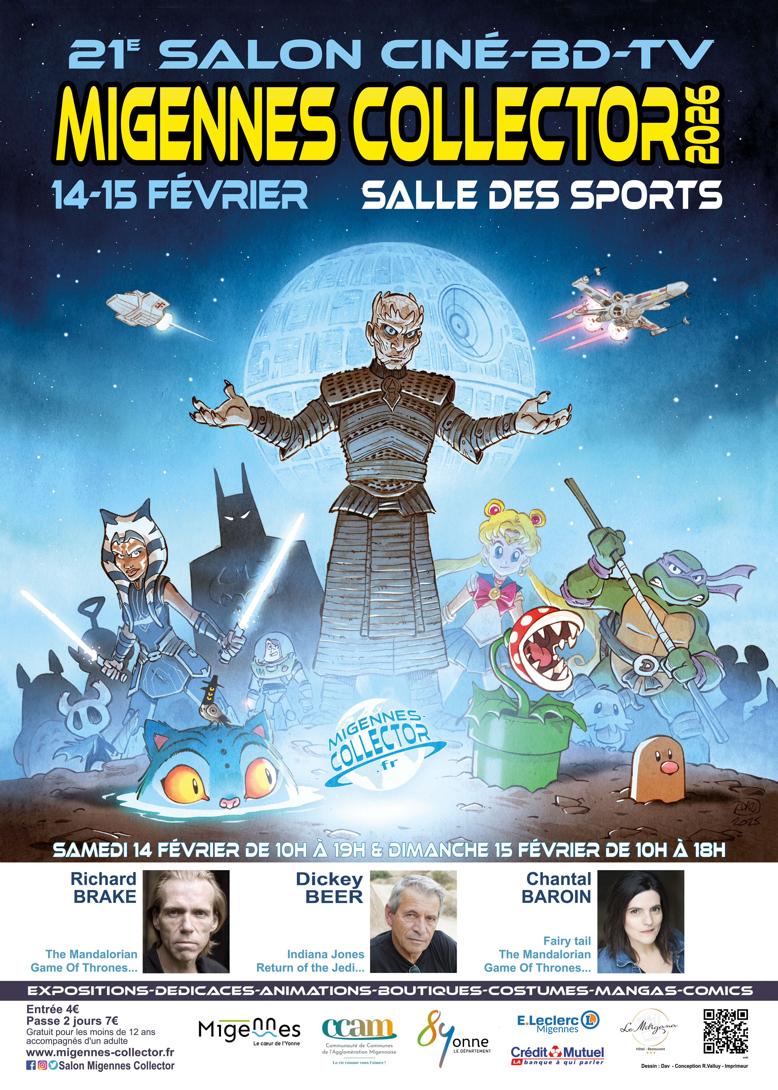 Événement unique qui devient incontournable pour les fans de culture BD, séries télé, science-fiction et Super Héros ! Migennes Collector a déjà reçu comme invité d'honneur l'armée de clones de Star Wars, la voix française des Simpsons, Dirk Benedict de l'Agence Tous Risques ou encore la célèbre voiture Dolorean de Doc dans Retour vers le Futur.